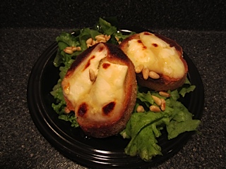 For example,  “Melty Goat Cheese Salad with Honey and Pine Nuts” (p. 38) provided the perfect stage to feature Reichert’s Dairy Air’s Robiola di mia Nonna goat cheese.  This is a simple tossing of greens (I used a mix of Berry Patch lettuce and spinach with green leaf lettuce from Krieger Greenhouse) with a light vinaigrette, topped with toasted pine nuts.  But what makes this salad special is melting “soft-ripened goat cheese” on toasty baguette slices, then drizzling with honey, and serving the crispy melty toasts on the bed of greens.  Now, whether Lois Reichert would call her Robiola a “soft-ripened cheese” is not certain to me—but it is perfect for this application.  I used Novae Vitae’s Pure Honey to finish the toasty morsels.  Though it is virtuous to serve them with a fresh green salad, it occurs to me that the toasts alone would be a lovely appetizer or a great accompaniment to any other kind of salad or light supper.